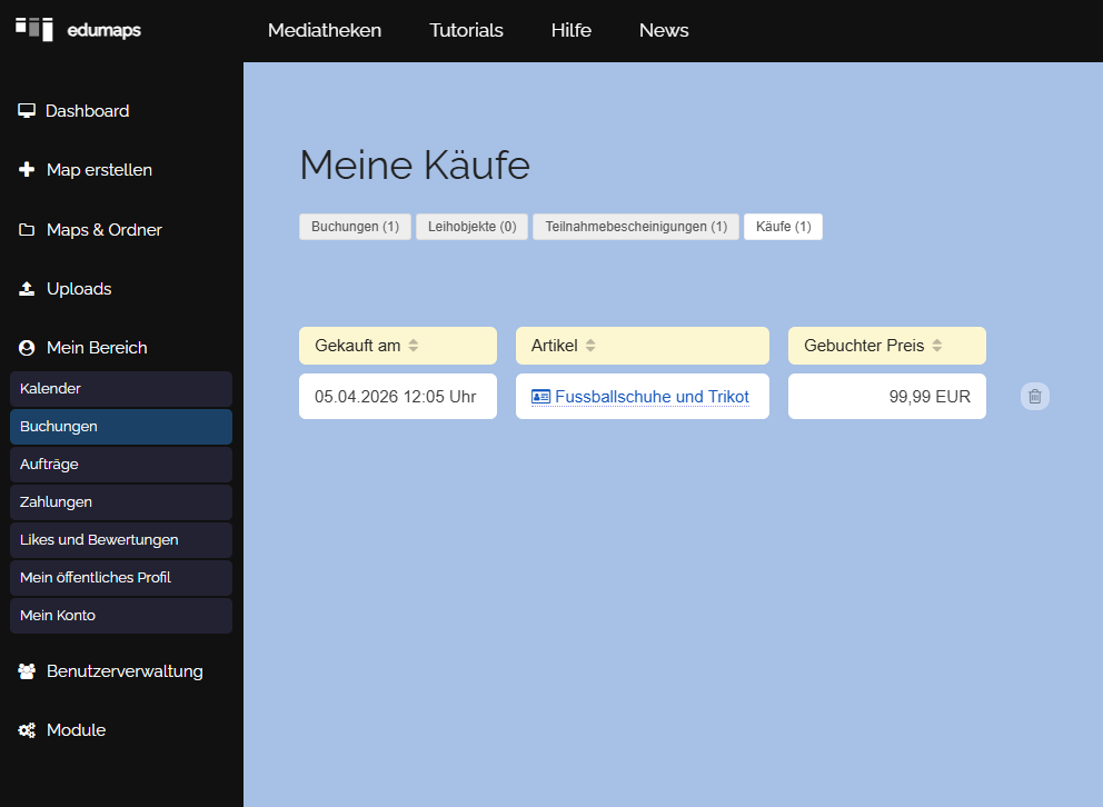 - Auf der Seite „Meine Käufer“ sieht jeder Benutzer, welche Käufe er bereits getätigt hat.