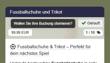 Jeder Käufer kann seine Bestellung stornieren, indem er auf den Button „Gekauft“ klickt: